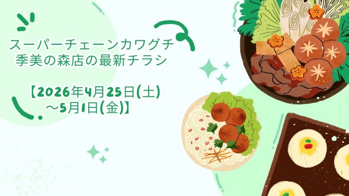 スーパーチェーンカワグチ 季美の森店の『最新のチラシ』2026年4月21日(火)~24日(金)を紹介いたします。 ■カワグチ 季美の森店の最新チラシ スーパーチェーンカワグチ 季美の森店の最新のチラシ ...