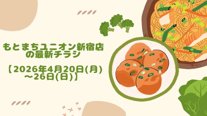 もとまちユニオン新宿店の『最新のチラシ』2026年4月13日(月)~19日(日)を紹介いたします。 ■もとまちユニオン新宿店の最新チラシ もとまちユニオン新宿店の最新のチラシ期間は2026年4月13日 ...