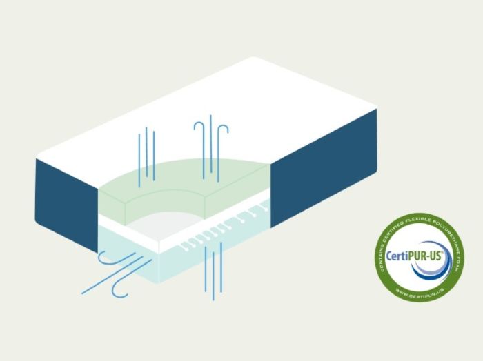 特徴・ウレタンフォームの中では通気性を意識した構造で、熱や湿気を逃がしやすい設計。・中材の「エアファイバー」が90%以上空気層で構成されており、通気性は非常に高い。