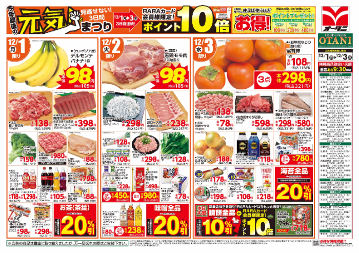 フードオアシスオータニ 幸手店の『最新のチラシ』2025年12月1日(月)~3日(水)を紹介いたします。