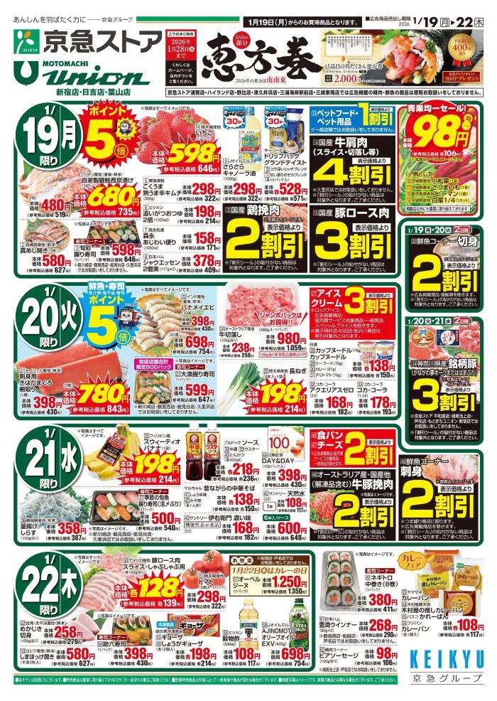 量産型ブログ HOME > チラシ > チラシ もとまちユニオン新宿店の最新チラシ【2026年1月19日(月)~22日(木)】 2024年8月15日 2026年1月19日 もとまちユニオン新宿店の『最新のチラシ』
