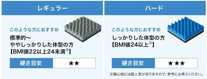 | 反発力 | 中反発〜やや高反発(選択可能) | 高反発 |